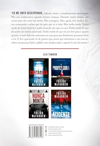 Freida McFadden transforma essas situações em uma narrativa envolvente, que prende o leitor desde a primeira linha e o faz questionar: o quanto realmente conhecemos quem está ao nosso lado?
